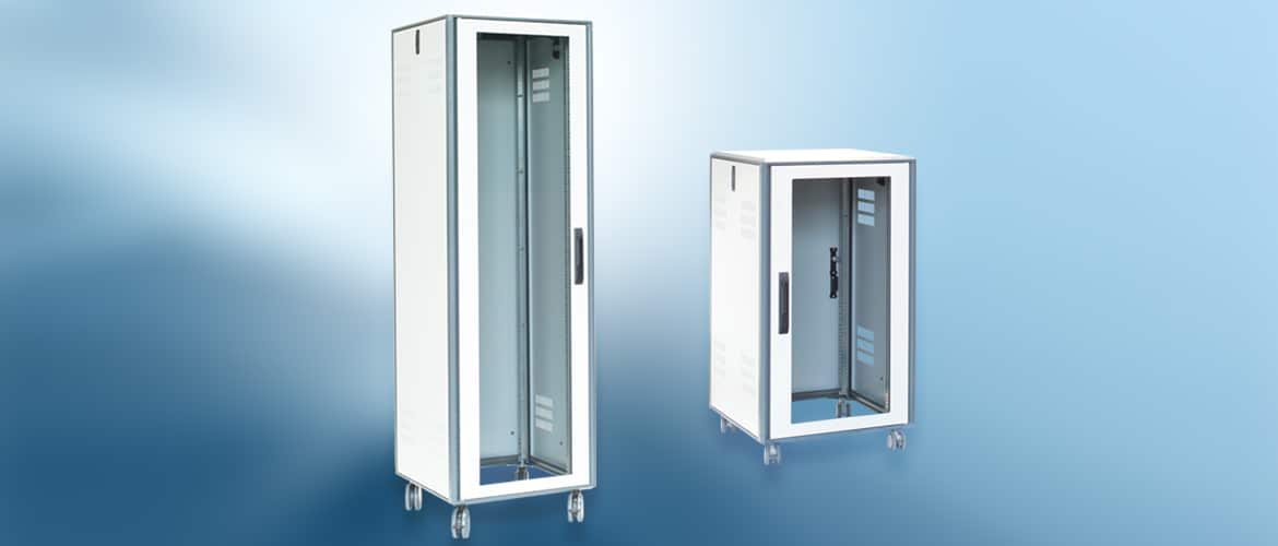 Due to its elegant shape and the light construction of the aluminium extrusion our 19” cabinet system “aprack” is a universal talent. Whether in modern offices as an optical good looking networking cabinet or to take 19” audio and video components: he always cuts a good figure. Due to the large range of accessories and the various expansion possibilities this cabinet system is also the perfect solution for rough industrial environments or for the usage in test- and controll systems.